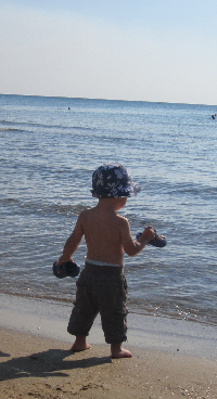 Так что у Яри теперь есть все основания ненавидеть пляжный отдых до конца своих дней. Обидно. Ради него всё и затевалось: я сама, хоть так тяжко на курорте никогда не болела, а море всё равно не люблю. Мне там скучно. Мудрёный, видимо, пошёл в меня. На пляже его явно удручало избыточное пространство: широкая лента песка (песок офигенный! Мелкий, шёлковый, говорят, целебный), протянувшаяся от Анапы до покуда видит глаз, однообразно отлогие дюны за спиной и не менее однообразные волны до горизонта. Уроженец мегаполиса, он любит экшн. Избыток объектов, плотная застройка, лабиринты дворов, шеренги припаркованных машин, спешащие пешеходы, ревущие авторстрады - вот это по-нашему. Когда мы обнаружили, что на территорию одного из пансионатов пускают всех, не проверяя пропуск, и стали этим злоупотреблять - малыш всякий раз с упоением носился по узеньким дорожкам от корпуса к корпусу, шнырял туда-сюда между кустами можжевельника, наворачивал круги вокруг клумб, по десятку раз взбегал на каждое крыльцо, заглядывал в лицо вальяжно фланирующим отдыхальцам.