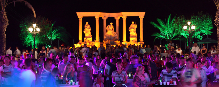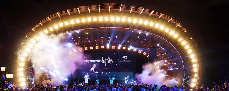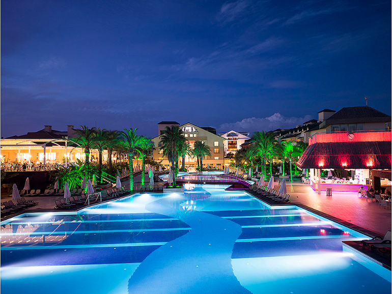 Отель Alva Donna Exclusive Hotel & Spa построен на побережье кристально-чистого Средиземного моря. Отель занимает территорию в 64.000 м², имеет собственный песчаный пляж длиной 300 метров, отличается необычной архитектурой и великолепным пейзажем.Аквапарки и бассейны различных форм и размеров делают его воистину райским местом для отдыха детей и взрослых.