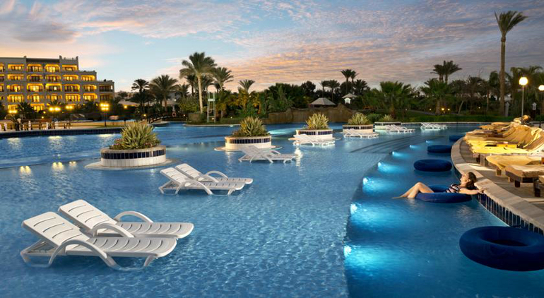 Фешенебельный отель высокого уровня и один из лучших в Хургаде! Территория грамотно разделена на зоны для спокойного (где только взрослые), активного и семейного отдыха (аквапарк, детская площадка, детский клуб). Питание никого не оставит равнодушным, в отелей действует систмема: PREMIUM ALL INCLUSIVE. 7 ресторанов а' ля карт - БЕСПЛАТНО, 7 бассейнов, 2 - с подогревом, 3 - с морской водой. Отличное питание, номера, сервис. Данный отель прекрасно подойдет для отдыха всей семьей!