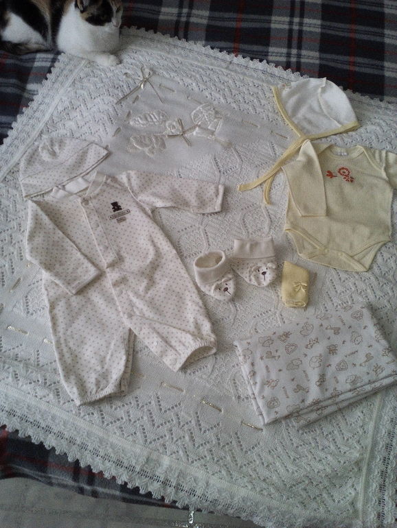 Наконец-то готов наш наряд. Хотела без рюшечек, без атласных странных конвертов в кружеве и т.д. Хотела милый пледик, и простой слипик, только не розовый. Пдр 20 сентября, у нас должно быть тепло, пленочка фланелевая на всякий случай. Бант вот не знаю, розовый или желтый, ну в любом случае, мама пусть покупает, привезет в роддом, не буду я эту ленту искать. Ну вот как-то так получилось.