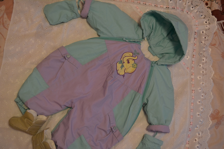 4. Еще один демисезонный комбинезон. На 3-6 мес. или дольше. Удобный, просторный, универсальный цвет (подойдет и мальчику). Цена 500р. Не могу найти к нему пинетки, могу предложить меховые за 200р. (покупали за 600р. в "Дочках и сыночках") и нарядный белый чепчик за 200р