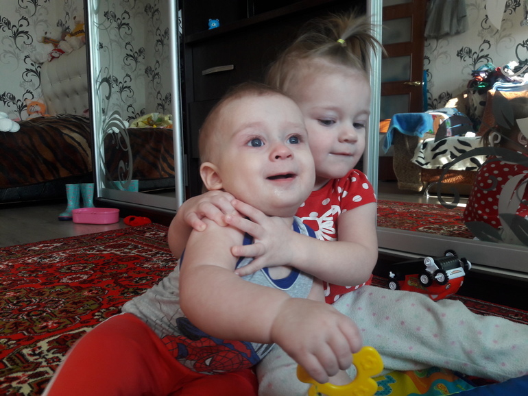Любит играть с посудой, машинками и конечно с Сашей)) В догонялки, ку-ку ладушки и просто друг на другу поваляться 😂😂 Учимся пить пить из чашки. У нас 4 зуба.