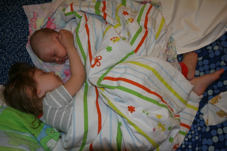 Спят они по-прежнему чаще вдвоем. Эх, а я еще собиралась отселить Лянку из нашей кровати, диванчик ей присматривала. А сейчас всё четче понимаю - дохлый номер, не выйдет из этой затеи ничего. Теперь, если и переселять, то сразу их вместе.