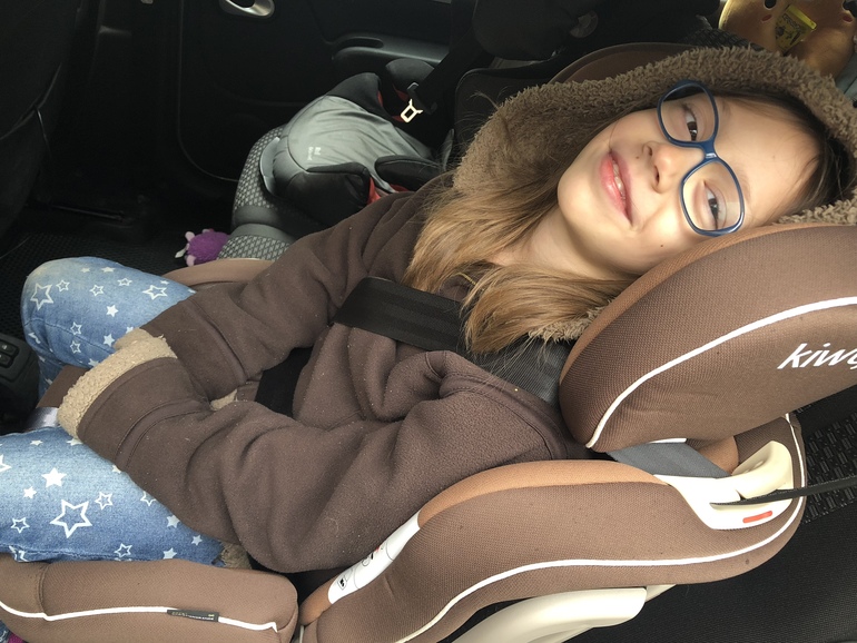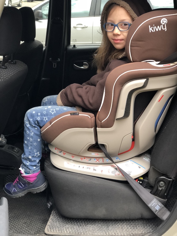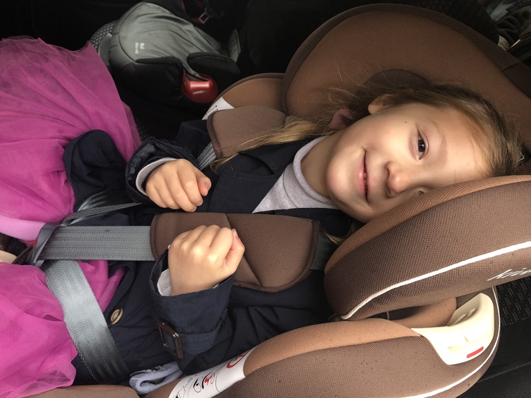 В Лесином варианте кресло пристегнуто изофиксом, а сама Леся вместе с креслом пристегнута штатным автомобильным ремнем. Лесе на момент тестирования еще 6 лет. Да, поздравляйте, поздравляйте меня в настоящей уже семилеткой!