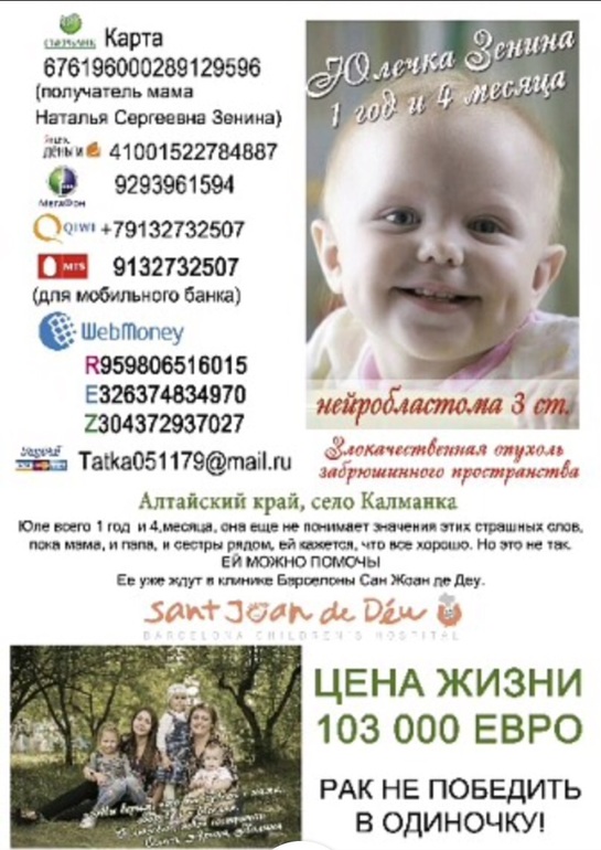 НЕЙРОБЛАСТОМА ЗАБРЮШНОГО ПРОСТРАНСТВА 3 стадия, средний риск, плохо поддающаяся химиотерапии, а куда проще так - ДЕТСКИЙ РАК.