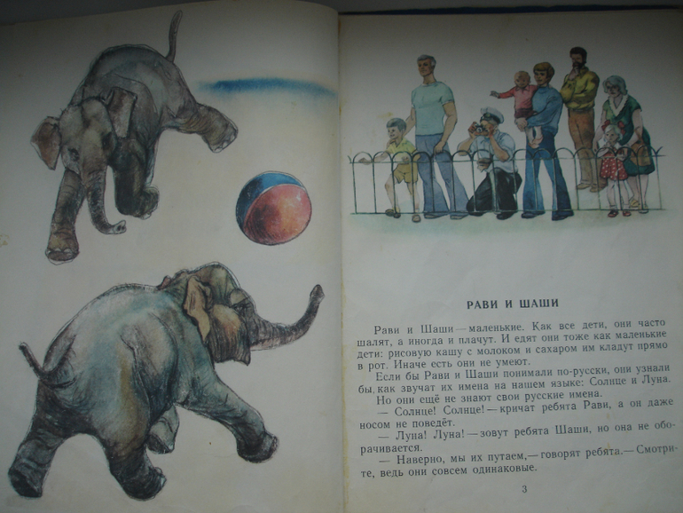 Детям, правда, придётся объяснить, что такое Советский Союз, и как понимать фразу премьер-министра Индии Джавахарлала Неру, что слонята - "послы детей Индии". Есть ещё упоминание о "Народе Вьетнама" и его "борьбе с врагами". Рави и Шаши - не единственные животные на теплоходе. Есть ещё два вьетнамских слона, тоже подарки Советского Союза. Вот они-то, до того, как стали подарками, помогали народу Вьетнама бороться с врагами - подносили продукты и боеприпасы. Обо всём этом - буквально пару абзацев, и они никак не мешают сюжету, который сам по себе "вне времени". Даже современному ребёнку будет интересно.