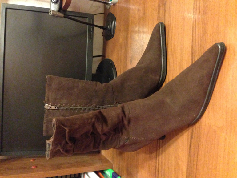 2) сапоги коричневые из замши, новые, идеальны на осень/весну, новве. экв 2100. Есть такая же модель в черном цвете пару раз б/у экв 1600