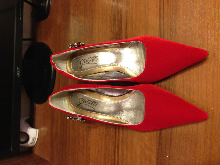6) красные туфли из бархата с украшением из страз Swarovski, которые при желании можно отстегнуть, р37. Новые. Экв 2000