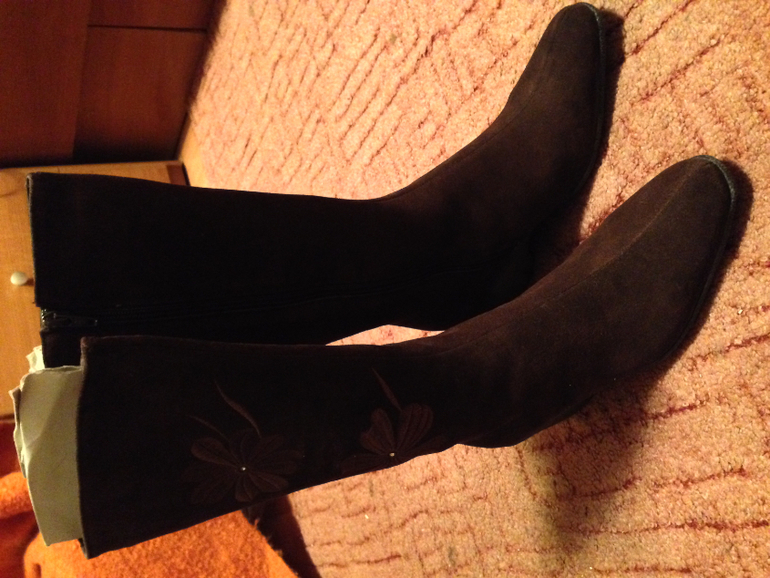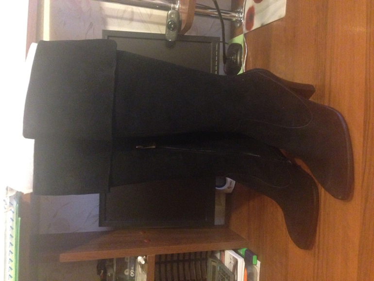 12) ботфорты из натуральной черной замши, стоили очень дорого, абсолютно новые, меняю на что-то действительно стоящее!!! Р37. Экв 10000