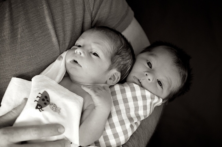 Интересно, что на протяжении всей беременности тот, что жил справа, был куда шустрее, чем тот, что слева. Шустрика муж назвал Максимом. «А второго называй сама». Я терялась. Примерно за неделю до родов имя пришло само: Ванюша. Родились мы в четверг, ясным солнечным утром. И по моим ощущениям, первым появился Максим (2,050 кг, 45 см), Ванюша - вслед за ним (2,850 кг, 50 см). Только я понять не могла, почему Максимка такой спокойный, а Ванечка - наоборот, активный как волчок… Через день педиатр-неонатолог разъяснила мои сомнения. Ваня - это не Ваня, а мой шустрик Макс, который всю беременность буянил у меня в животе… И что интересно, примерно спустя неделю они резко поменяли характер: вероятно, начало действовать имя - для себя я это так объяснила…