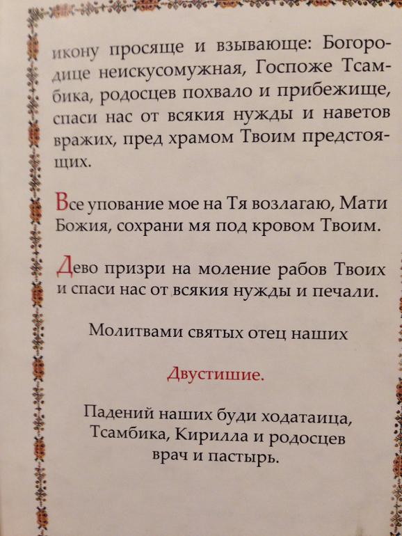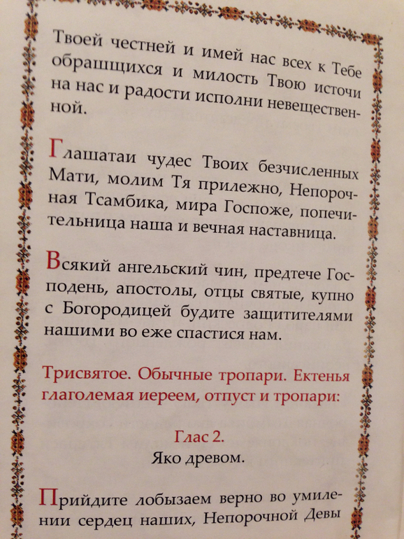 Выкладываю сфотографированную книжечку, которую мы там приобрели (кроме канона интересно почитать историю монастыря и обретения иконы). Если Вам такой формат не подходит - напишите мне почту iralyapina@mail.ru , перешлю в pdf только текст.