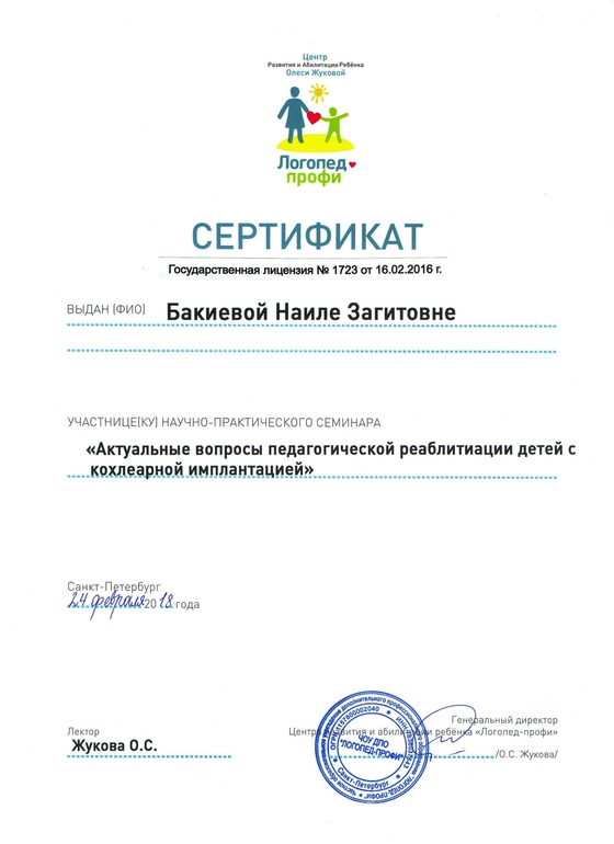 Февраль насыщен разнообразными событиями, одно из которых связано с посещением научно-практического семинара О.С. Жуковой на тему "Актуальные вопросы педагогической реабилитации детей с кохлеарной имплантацией".