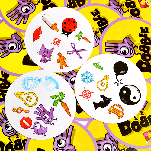 Доббль содержит пять разных мини-игр, которые можно менять в зависимости от возраста и количества противников. В одних играх нужно не прозевать и успеть избавится от своих карточек, а в других, наоборот, нужно собрать как можно больше чужих, но общий смысл всегда один. Нужно найти два одинаковых предмета на двух карточках.