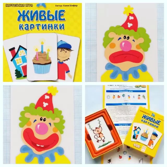 Рисунки на карточках настольной игры Живые картинки действительно оживают! Свет в окнах гаснет, щенок засыпает, рыбка выпрыгивает из воды... Секрет этого волшебства в том, что рисунки на двух сторонах каждой карты очень похожи, но чем-то обязательно различаются: цветок может быть раскрытым или в бутоне, солнышко может прятаться за тучкой или сиять над ней. В ходе игры один из участников переворачивает какую-нибудь карту, а остальные пытаются отгадать, какую карту он перевернул.