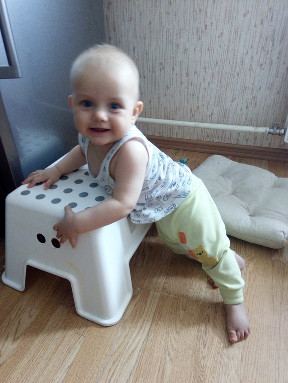 Встал на четвереньки, за неделю до 6 месяцев получается. Качается теперь. Исключительно на диване, потому что на полу коленкам больно-не нравится ему. Не знаю что придумать. В восторге, конечно от своей умелки, но не так как дочь. Стася помнится ночью вс...