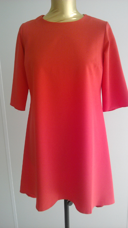 Платье цвет коралл. Перед укорочен . Длина по переду 84, по спинке 94.Размеры 52..