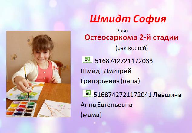 Дорогие друзья! Обращаюсь к вам с огромной просьбой! У одной из моих маленьких учениц, Сонечки Шмидт, случилась беда - девочке 7 лет поставили страшный диагноз, рак.
