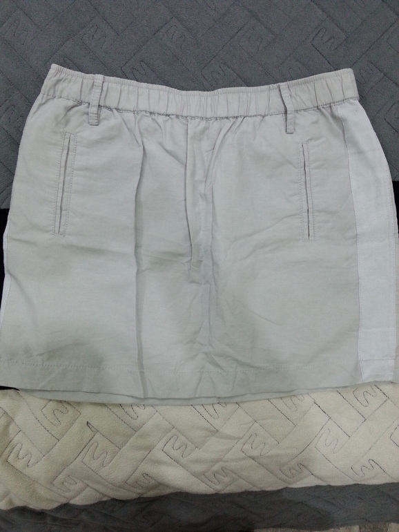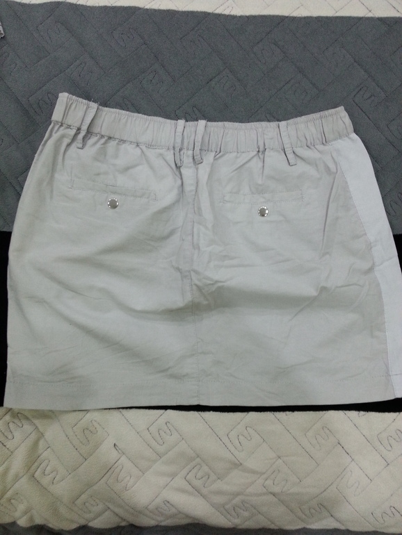1. Юбка серая в горошек с ремешком. OGGI. Размер 48. Цена 400р.