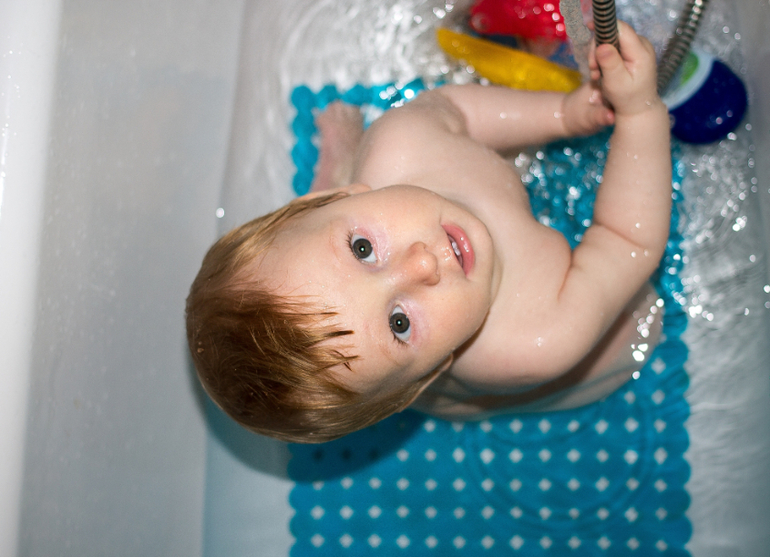 Купаться любит, под присмотром папы чаще купается. В ванне противоскользящий коврик, куча бутыльков и игрух и самый хит - лейка душа из которой бежит все время вода. Иногда пьет, иногда папу поливает))