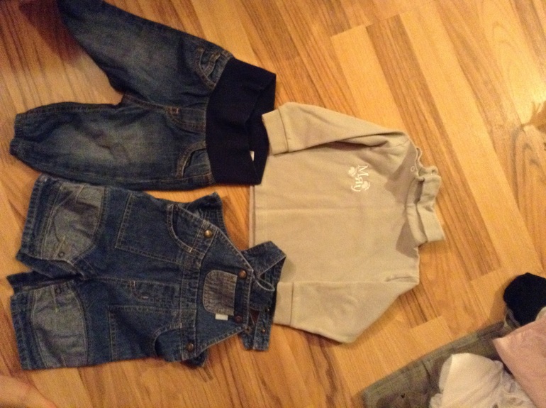 Комбинезон 3-6 мес. 500 р; кофточка 6-9 мес 250 р( пятен нет,не застираны)