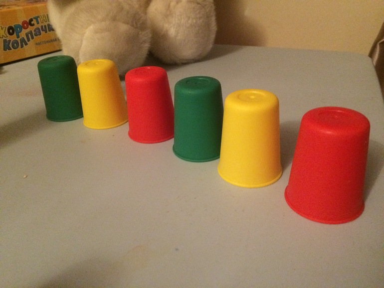 6. Можно использовать в игры на внимание, типа "Угадай, под каким колпачком сюрприз?" (крутить и снова угадывать)