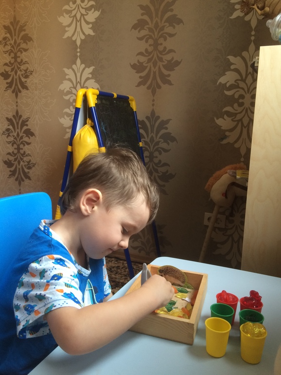 но при этом часть из них простые (начальный уровень) - пирамидка, мороженое, к примеру, или дом...А есть и варианты посложнее! Тут еще сначала нужно определить, что за чем следует (у Марка пока с этим проблема, потому что он идет взглядом по одной оси, а потом по второй, и "пирамидка" из колпачков выходит неправильная!)