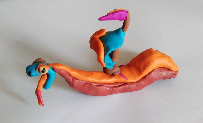 Читаем его часто, смеется, вспоминает и лепит...лепит героев, совсем недавно прочли одно из продолжений , про Кузьку и злодеев Бубуню и Хромоножку.Ну и результат)))