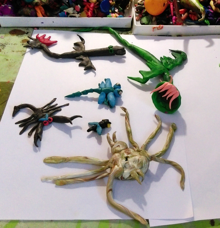 Сюжетов разыгрывает ооочень много, видоизменяя, привнося что то свое, иной раз лепит очень схематично, чаще очень тщательно. Все фотографировать не успеваю, да и повторяется многое.