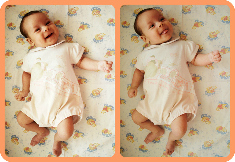 В первый же день после родов мы были уже дома и началась наша родительская практика ) Смеялись - как она пила первые дни Беби Дриньк причмокивая ))) Как сопела, когда спала (а я очень переживала, постоянно прислушивалась - как она дышит, всё ли с ней в порядке), как строила рожицы и кривлялась. А потом была первая улыбка.. Вот радости-то! Какая же она прелесть! ))