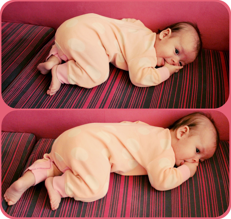 Уррраа!! Мы перевернулись на животик!! До этого переворачивалась только с моей помощью - держалась за пальчик или я подталкивала её сзади, а теперь сама! Умничка моя!!