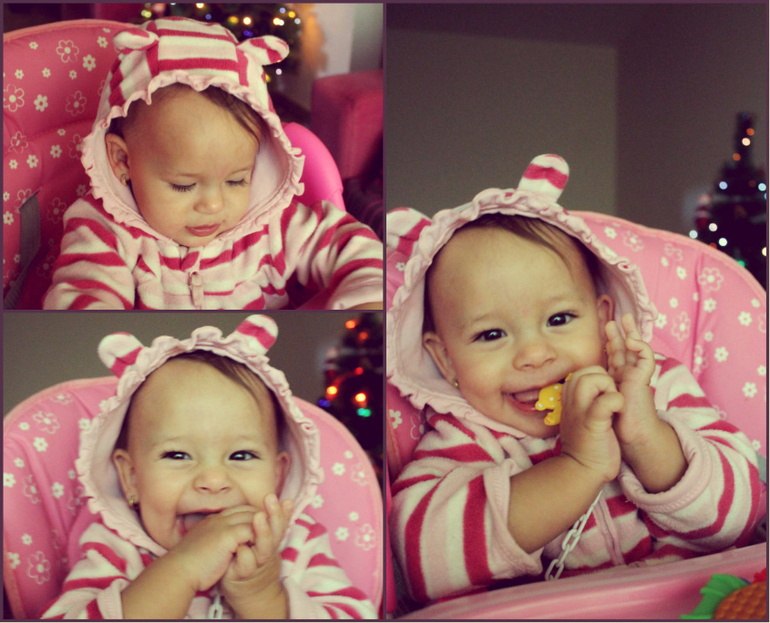 У нас прорезались ещё 2 зубика - верхний левый и через один от нижнего ) Так чудно растут зубки у нас ) Обычно снизу два, потом сверху два, а у нас сверху слева один, снизу слева один и внизу через один )) Так смешно улыбается, зубки торчат )))