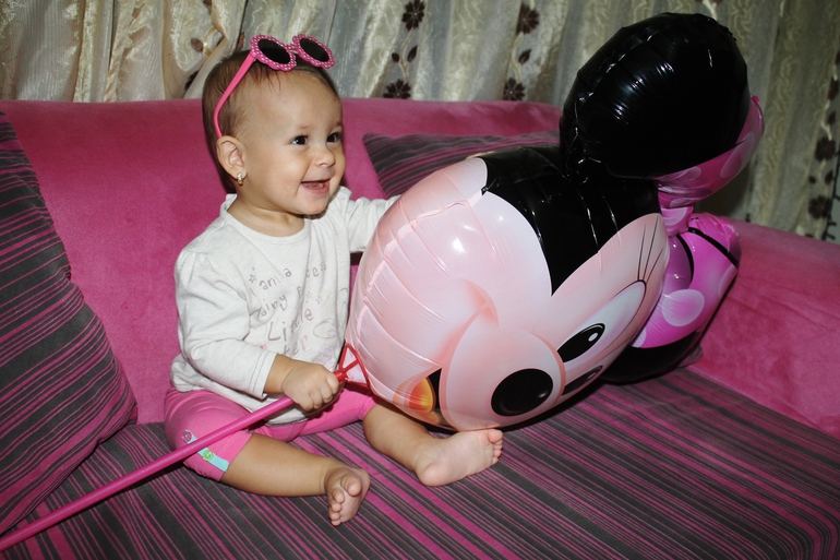 Любимые игрушки это те, которые вообще не игрушки - шнуры от зарядки, ремни, деревянная ложка, телефоны, тюбик с присыпкой, пеленки-шарфы, их она накидывает на голову так, чтобы ничего не видеть и бежит прямиком в стену! И ржёт!