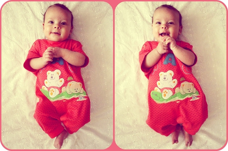 Ну вот нам и 3 месяца! Растём мы не по дням, а по часам по-моему! )) Пакет с вещами, которые нам уже малы постепенно увеличивается )) Мы уже хохочем, чем просто безуууумно радуем маму, папу и бабушку, с которой всегда говорим по скайпу ))) Правда, чтобы рассмешить - нужно чень хорошо постараться ) Бабушка наша всё плачет, что нет возможности увидеть внучку вживую, что мы так далеко.