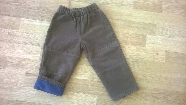и теплые штанишки из остатков ткани от папиных брюк, утепленные футером с начесом