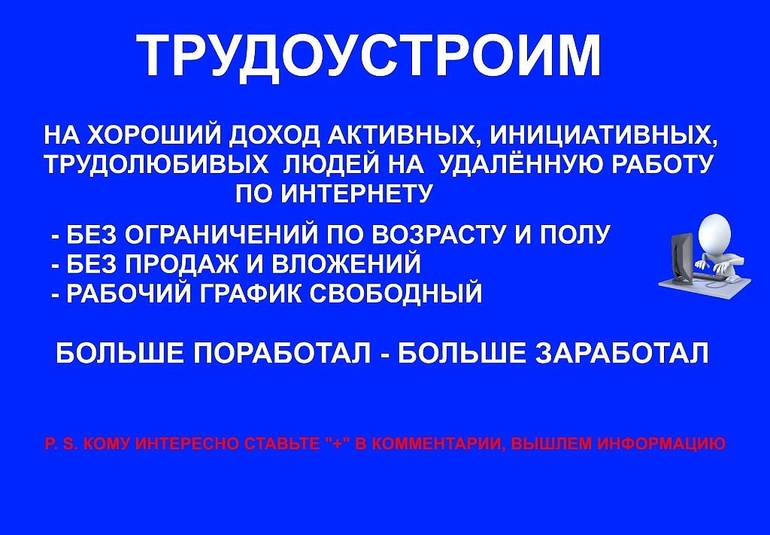 ЗА ПОДРОБНОСТЯМИ ДОБАВЛЯЙТЕСЬ В СКАЙП LYSEK25071989 C ПОМЕТКОЙ "УЗНАТЬ О РАБОТЕ" ИЛИ ПИШИТЕ В ЛИЧКУ.