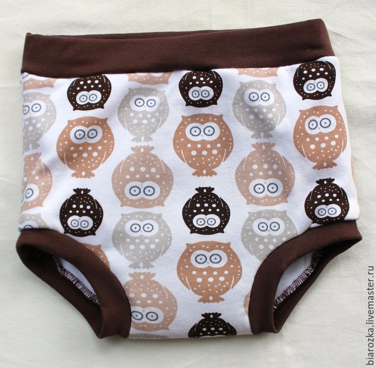 1. "Совы" с коричневыми манжетами и поясом - в этих трусиках вшитый впитывающий вкладыш из 3х слоев белого трикотажа-футера (100 %хлопок).