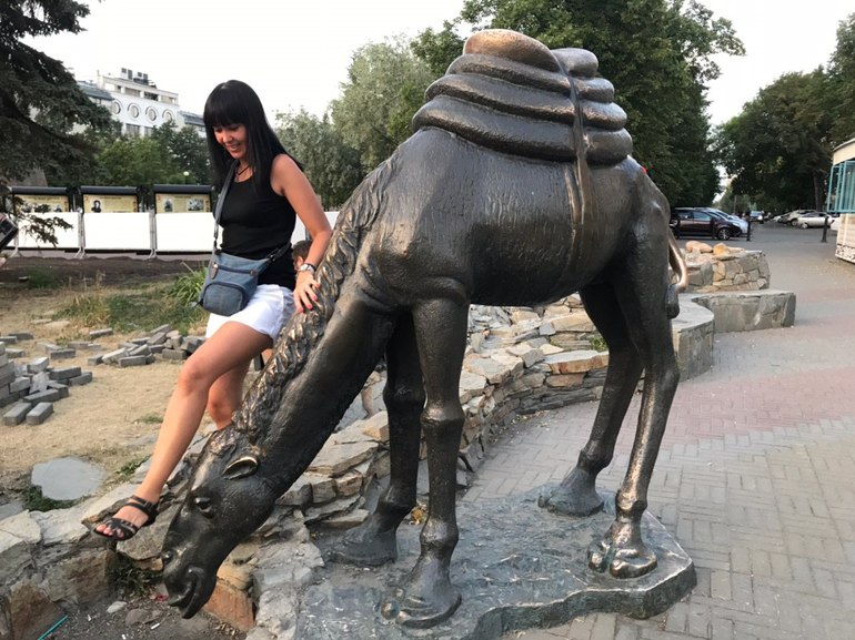 С символом Че - верблюдом, а рядом и сам символ Че - верблюд. Девочки хотели меня закинуть на него и сфоткать, но я не далась)))) Фоткаемся просто рядом)))
