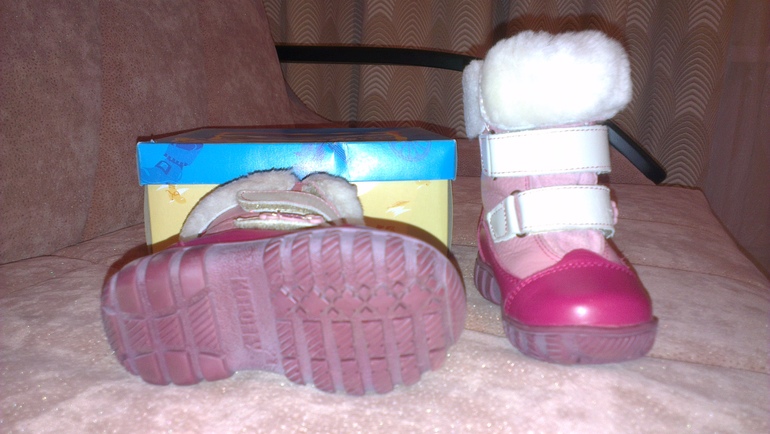 Зимние сапожки для девочки фирмы Котофей. Сверху натуральная кожа, внутри овчина. Размер 21, по стельке 13,5 см. Носили в период, когда ребенок еще не ходил, сидел в коляске. Не поцарапаны, не разношены. С липучками, одеваются легко. Самовывоз г.Домодедово, возможна пересылка почтой (за ваш счет). Цена 1000 руб.