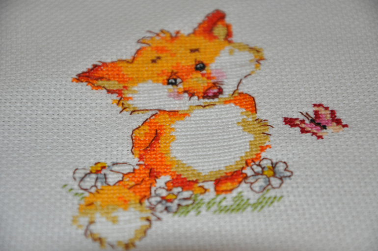 Недавно вышила Лисенка от Алисы остатками от набора, канву взяла 16ю, ниточек почти всех хватило на второй отшив)