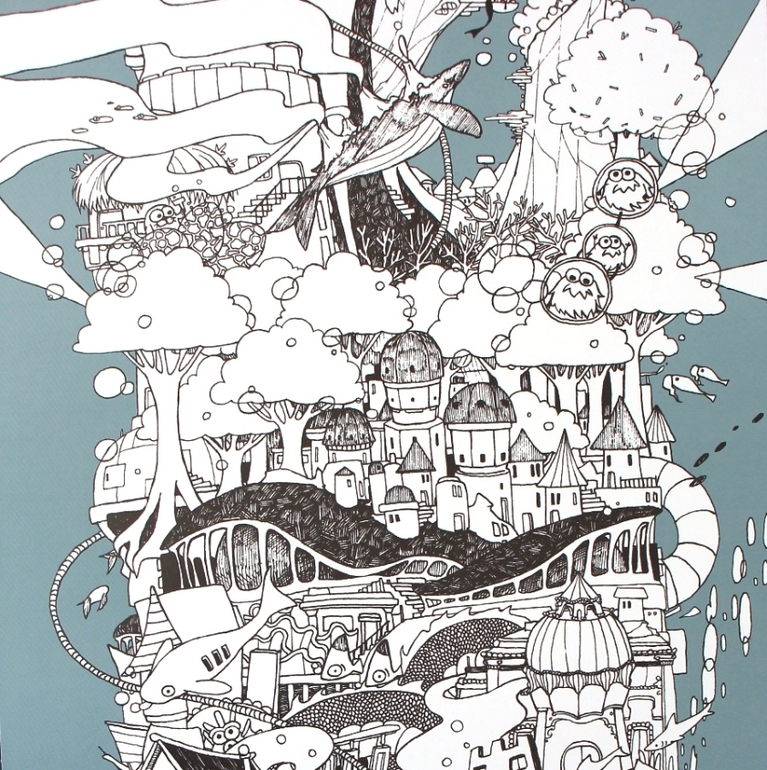 В этом моем альбоме целый океан: морские создания, корабли и лайнеры, пропавшие цивилизации, сокровища и чудища их охраняющие, батискафы и неведомые технологии. А если присмотреться, то это и есть таинственная цивилизация, населенная странными малышами.