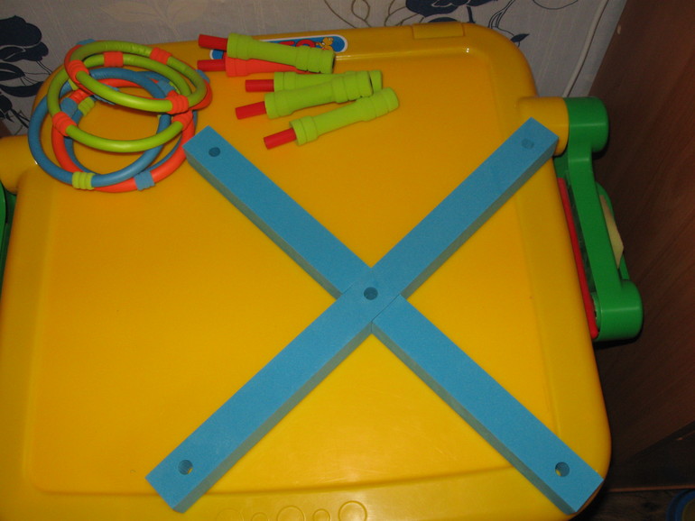 Собираем основу, вставляем столбики в отверстия, и все, можно приступать к игре.
