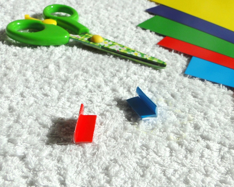 2) Из цветной бумаги нарезаем полосочки примерно шириной 2 см. и длиной 3,5 см.