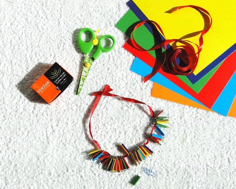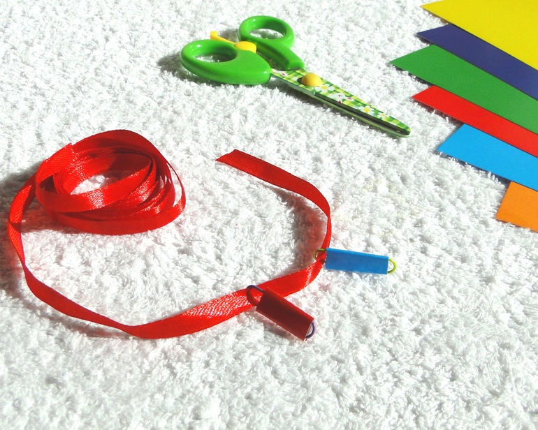 1) Нам понадобится: цветная бумага, канцелярские скрепки, лента шириной 3-5 мм., ножницы и "золотые руки"))