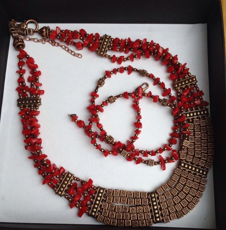 Подарила мне близкая подруга ожерелье из бисера и коралла. И после первого же выхода оно порвалось, ниточки не годились вообще. Часть бусинок растерялась. И тут на ББ в обменном пункте я увидела работы мастерицы Светланы. Работали долго над ожерельем, были эскизы, обсуждения, между ними обмены со Светланой, закупка материалов, и вот что получилось: