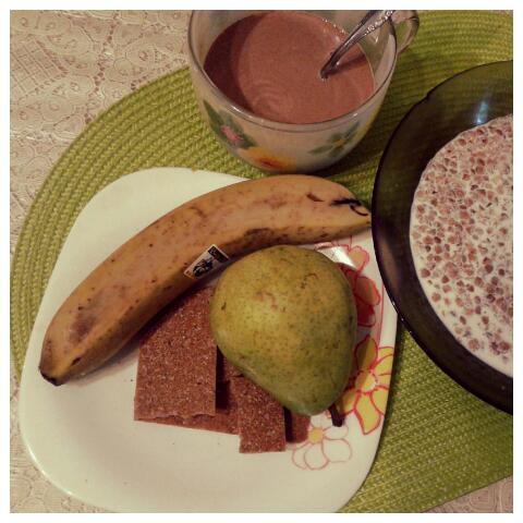 Перед тренировкой поела все-таки зерненный творог, он легче. Потом поем обед.