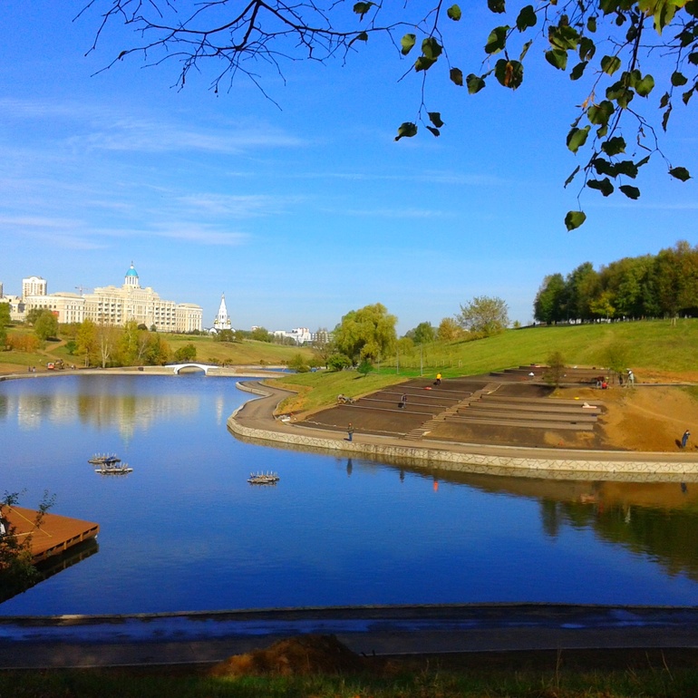 . Сейчас здесь проходит самая натуральная реконструкция, и сооружение новых строений. Вот это, например, театр на воде. Сцена слева, а зрительный зал, справа, на склоне. Посередине будут фонтаны.