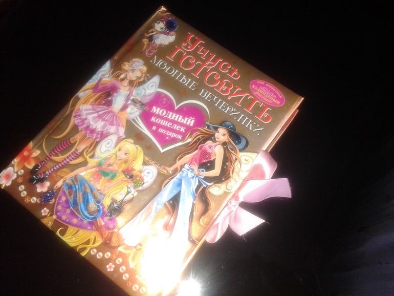 Кулинарная книга-дневник для девочки. В ней есть вступление про фей Винкс, в самой книге фотографии-подсказки как готовить блюда восточной кухни, роллы, пиццу и терамису. Отличнный подарок для расширения кругозора девочки в кулинарии, в игровой форме. В качестве подарка вкладыш в книгу - кошелек. Книга завязывается на бант. Книга издательства ЭКСМО. Эквивалент условный, пусть будет - 350р.