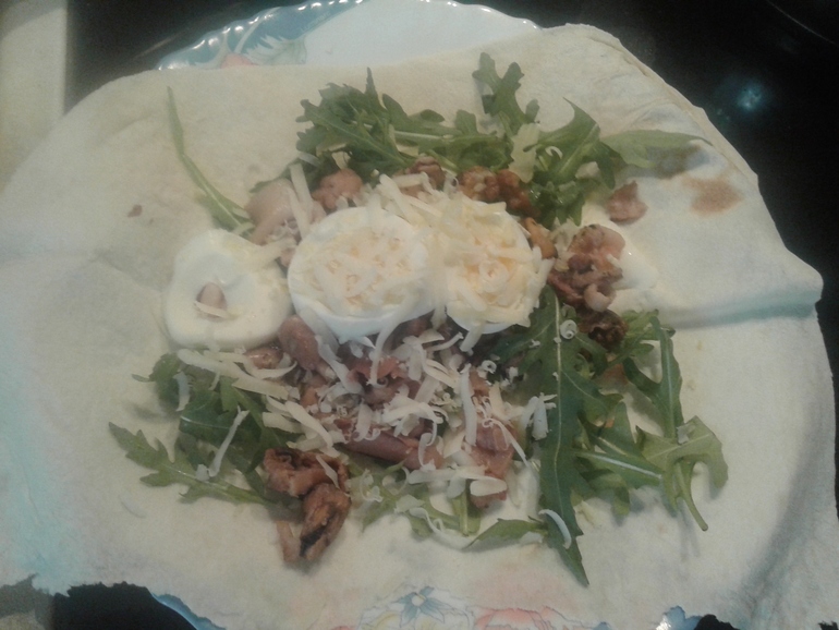 И салат для соблюдения БЖУ: руккола , ииндейка на пару, помидор, сыр тертый, яйцо, сок 1 дольки апельстна и творог 5%.