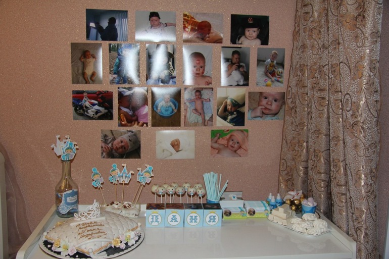 3. украшение квартиры (растяжка с фотками по месяцам, распечатанные фото на стене, постер с голосованием "на кого похож", правила дня рождения и конечно же шарики)