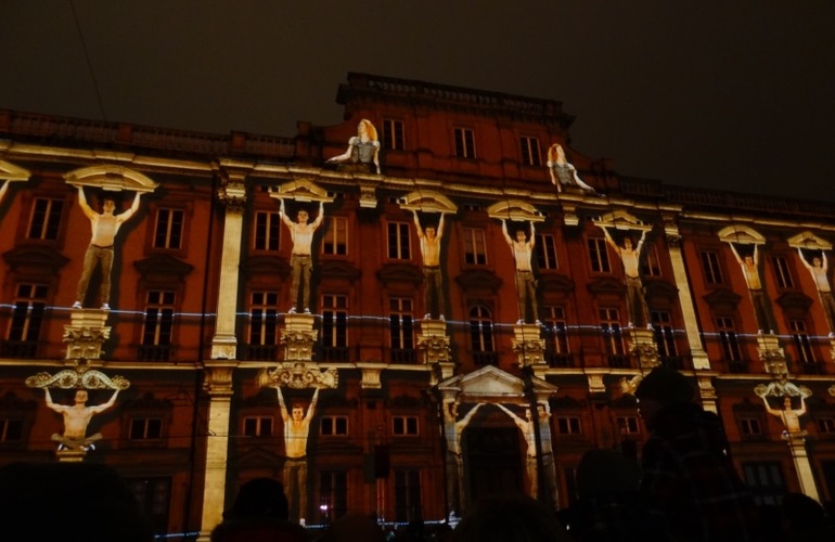 Вот таким был Лион этим вечером: на стены проецировались картины старых Мастеров - мудрые, прекрасные, светлые лица - и имена всех погибших 13 ноября: